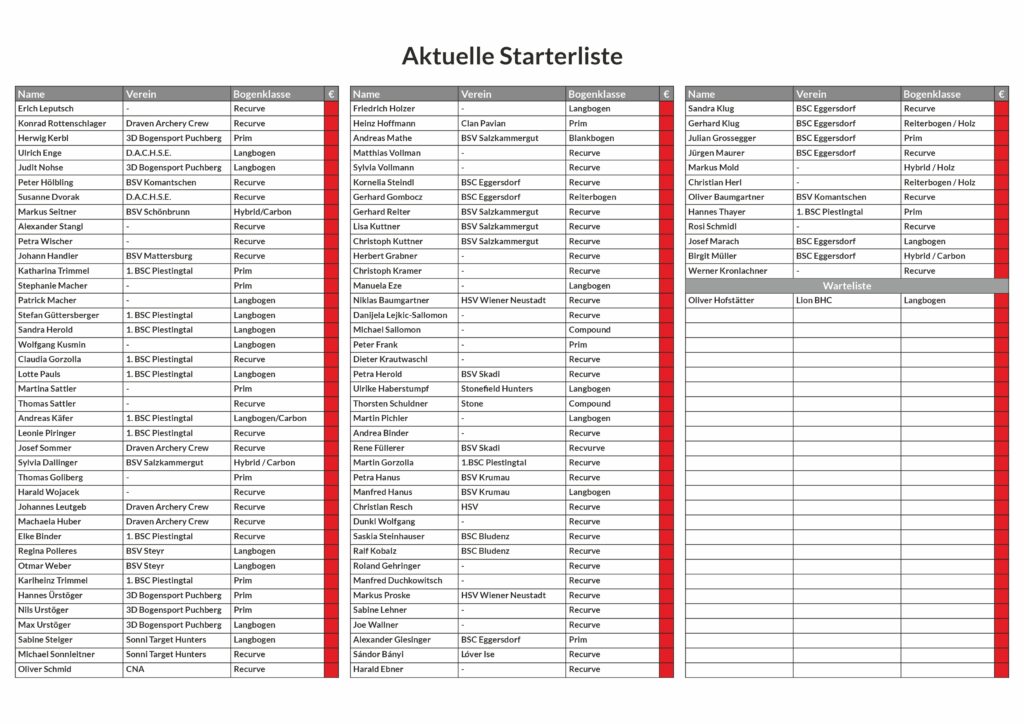 Anmeldeliste Stand 12.04.2026 - Alle die sich vor der "Warteliste" finden, haben einen fixen Startplatz.